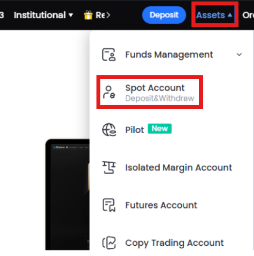게이트아이오에 로그인한 후, 우측 상단의 Assets - Spot Account 메뉴를 클릭합니다.
