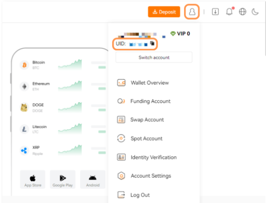 딥코인 UID 확인은 웹과 앱에서 확인이 가능합니다.